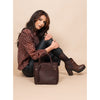 The color of this Crossbody tote bag is Brown Chocolate. All of Forever Handmade's leathers are full grain leather, that is the strongest and most durable available and is several times stronger than polished or padded leather.